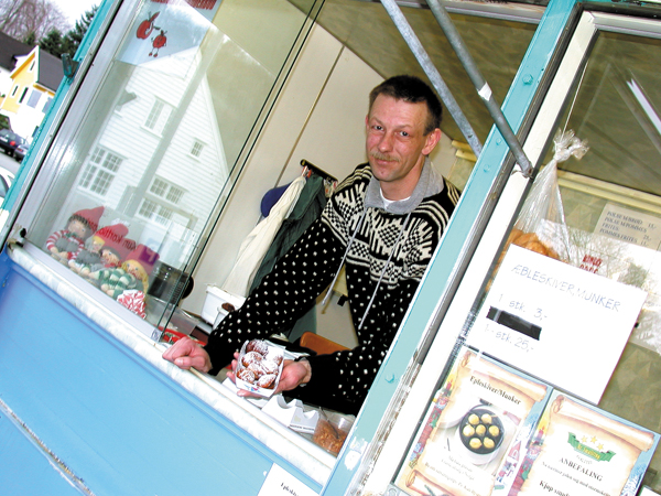 - Det er ikke så lett å selge røde pølser. Jeg må ta en forholdsvis høy pris, siden det er så vanskelig å få tak i slike pølser i Norge. Men æbleskivene er nok lettere å få solgt, spesielt etter at jeg oppdaget det norske ordet for denne godsaken; nemlig munker, smiler dansken.