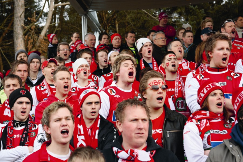 Vi står på indre løpebane og prøver å få kontakt med mannen som står og hamrer på en stor tromme mens han roper kampsanger av full hals. På banen på Sandnes stadion kjemper heltene hans sin første seriekamp mot den lyseblå naboen i nord. Etter bare ni minutter blir høyrefoten til Tommy Høiland for giftig for Sandnes, og Volds hærskare bryter ut i uhemmet jubel i det heltene får sesongens første nettkjenning. Vi har tidligere avtalt at vi skal møte supportersjefen på kampen, og prøver nå å få hans oppmerksomhet mellom slagene. Til slutt klarer vi det.